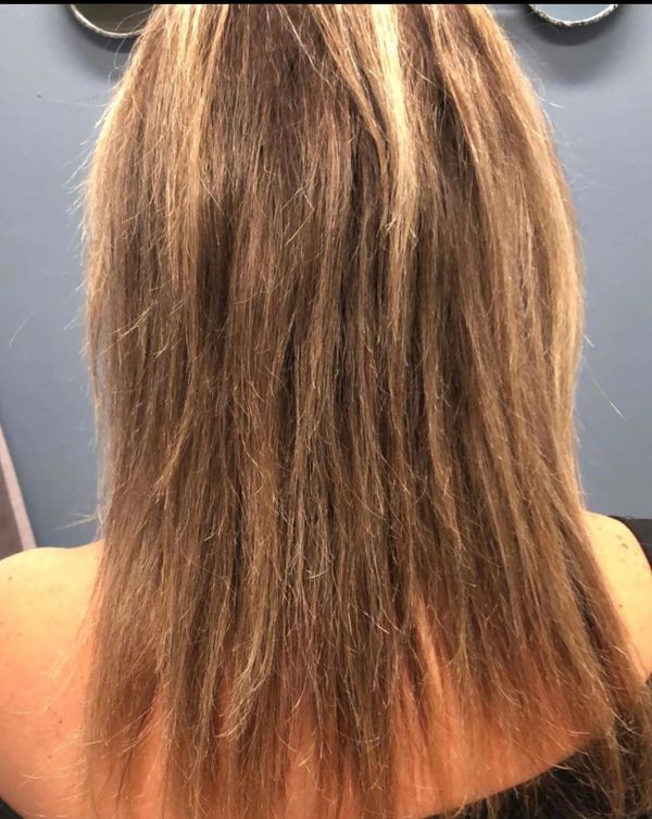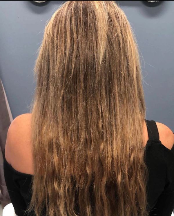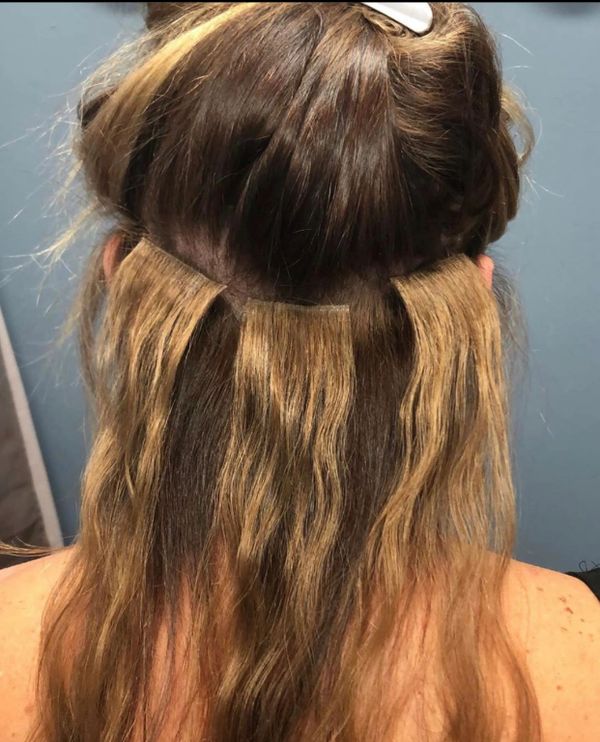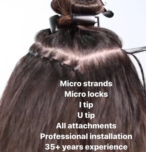 Extensions~ We use only the best quality 100% Human Hair & can match any color or texture. We do all attachments & match the best attachment for your lifestyle.